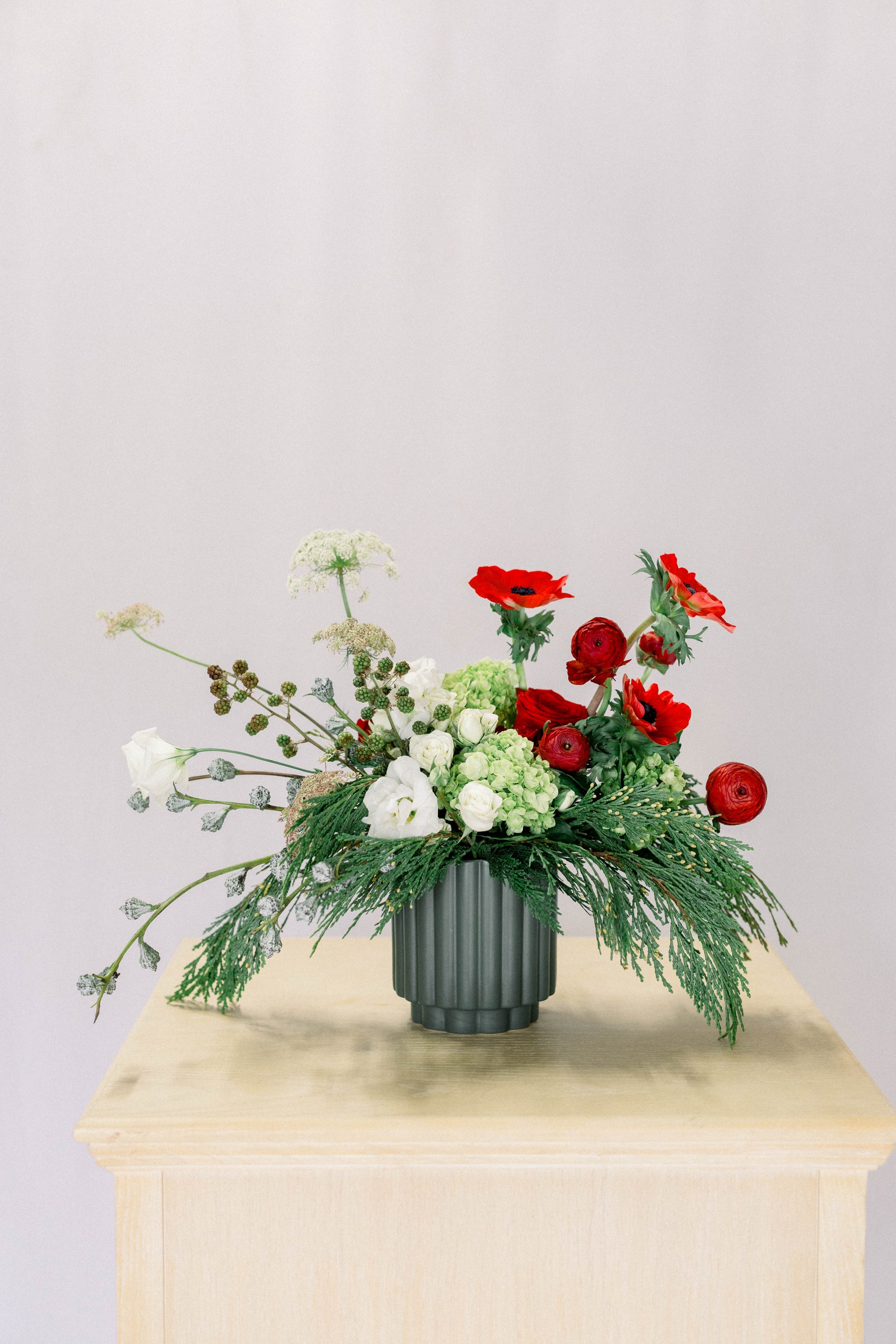 Blooms and vessel may vary, but the holiday cheer won't!