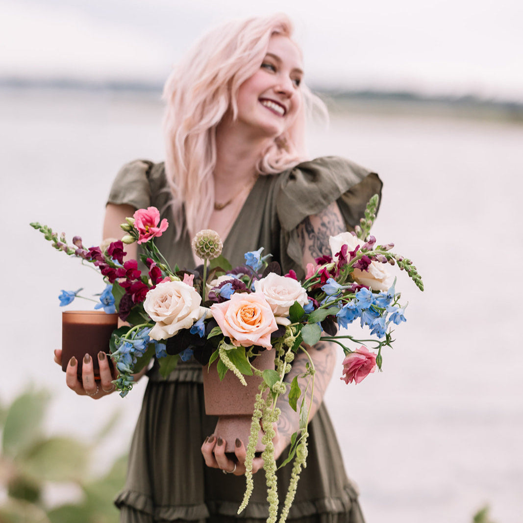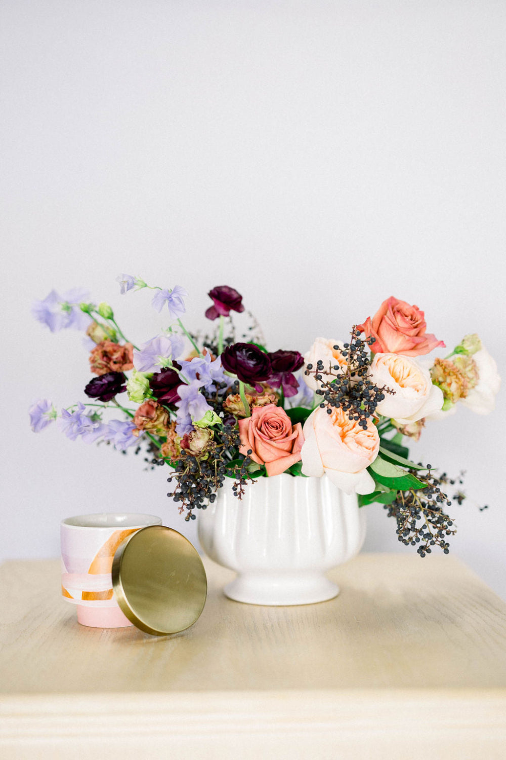 Set the tone for a romantic night in. Enjoy a selected specialty candle from our collection paired with a floral arrangement.